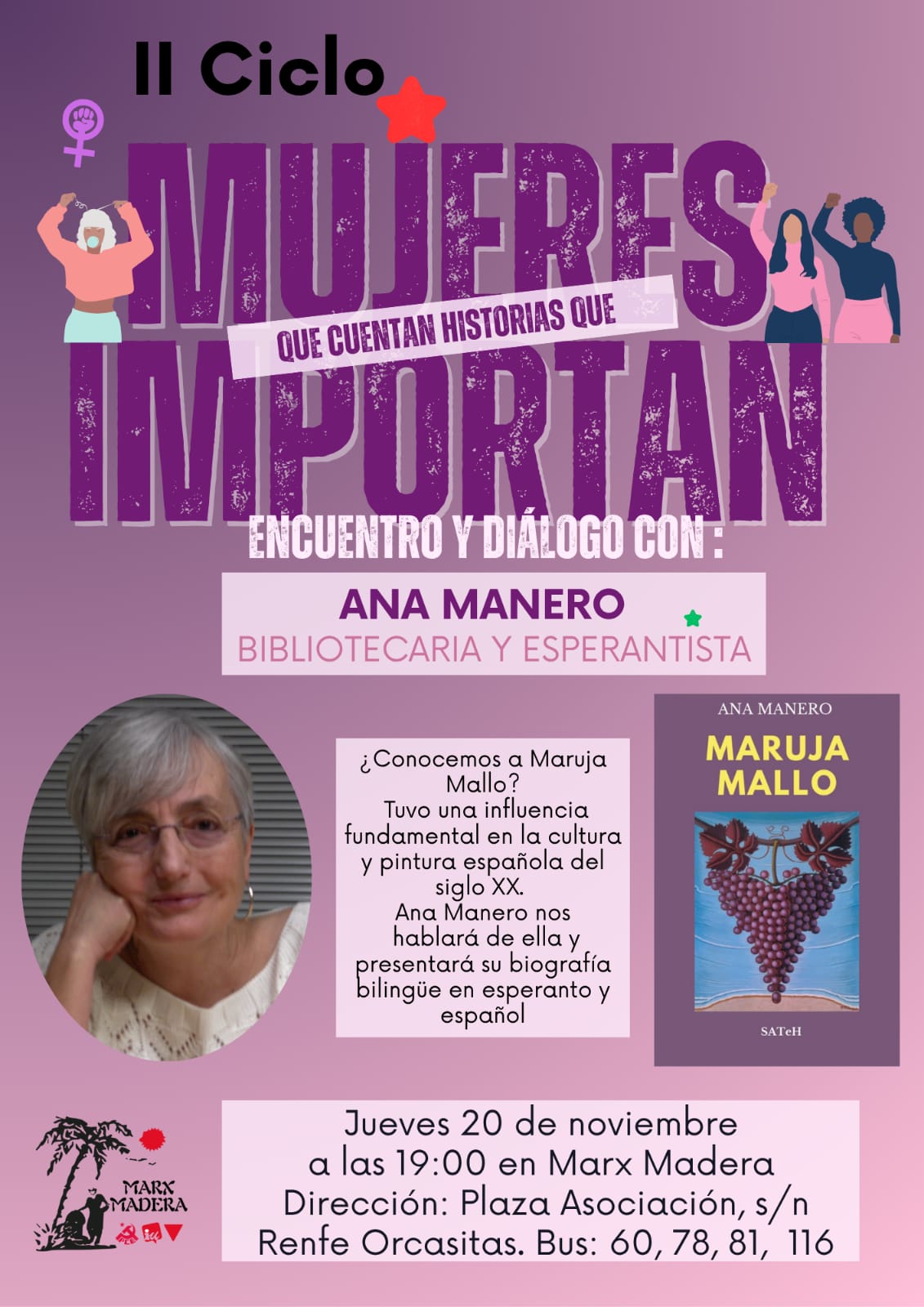 Presentación del libro bilingüe “Maruja Mallo” en la asociación Marx Madera de Madrid, el 20 de noviembre