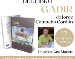 Presentación del libro “Gadir”, de Jorge Camacho, con poemas en castellano y esperanto, en la sede de la Federación, el 17 de noviembre a las 19,00 horas