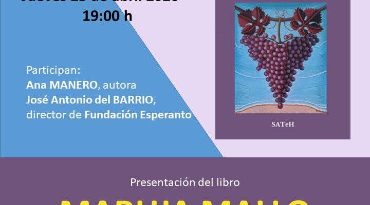 En Madrid, el Esperanto va a estar presente este año 2026 en la primera edición de Libromad, la iniciativa auspiciada por el gobierno regional con motivo del Día del Libro, que sustituye a la Noche de los Libros, en la que nuestra asociación participó en años anteriores. Lo haremos gracias a la colaboración con Espacio Late, un espacio-librería asociado a la Revista Late. Tendremos la ocasión de presentar de nuevo el libro “Maruja Mallo: Mucho más que una artista de vanguardia”, publicado por la Asociación Izquierda y Esperanto SATeH, en edición bilingüe español/esperanto, por parte de su autora, Ana Manero.  El evento tendrá lugar el jueves 23 de abril, a partir de las 19 horas, en la calle San Hermenegildo, 5, de Madrid (metro San Bernardo). El acceso es libre.